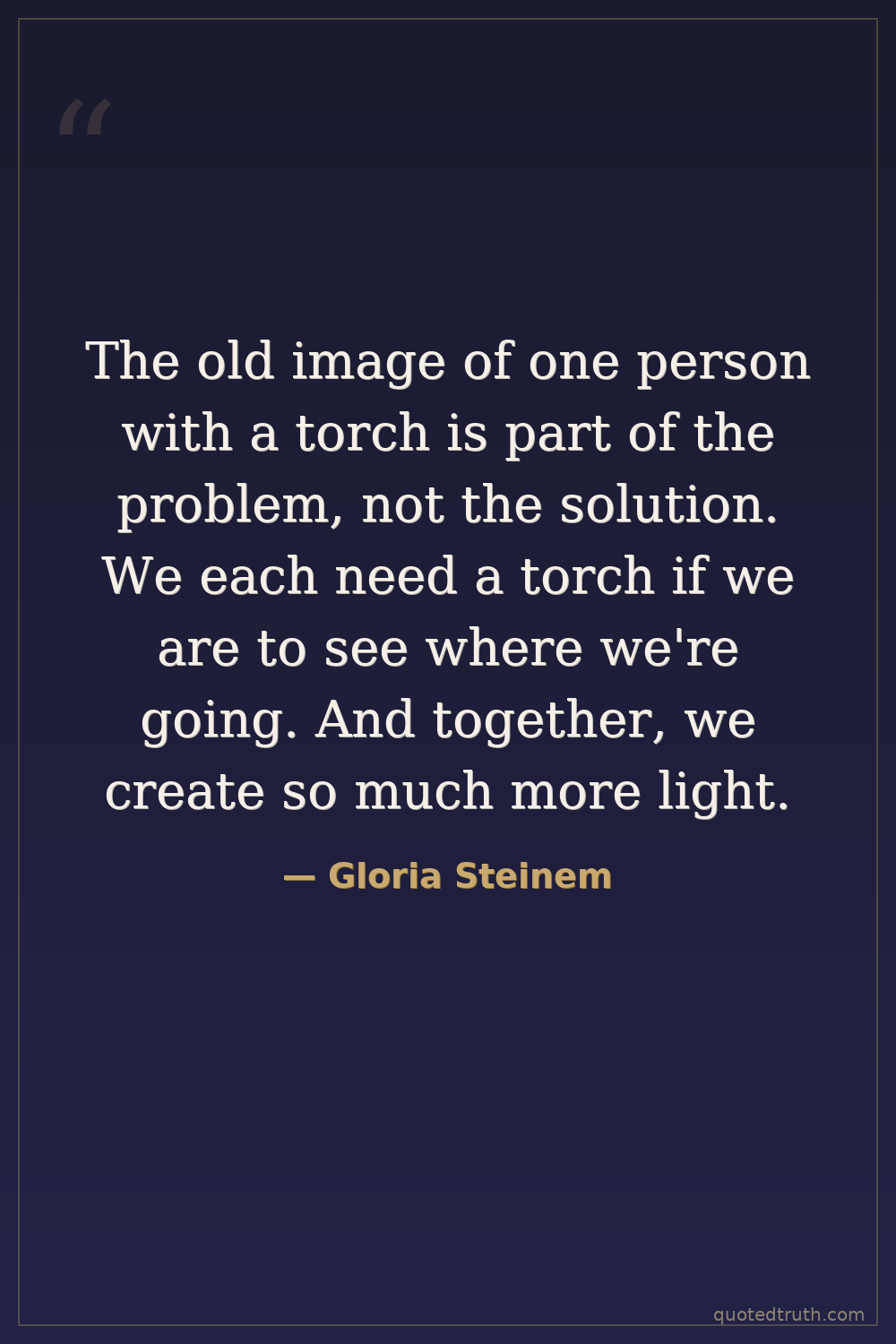 The old image of one person with a torch is part of the problem, not the solution. We each need a torch if we are to see where we're going. And together, we create so much more light.