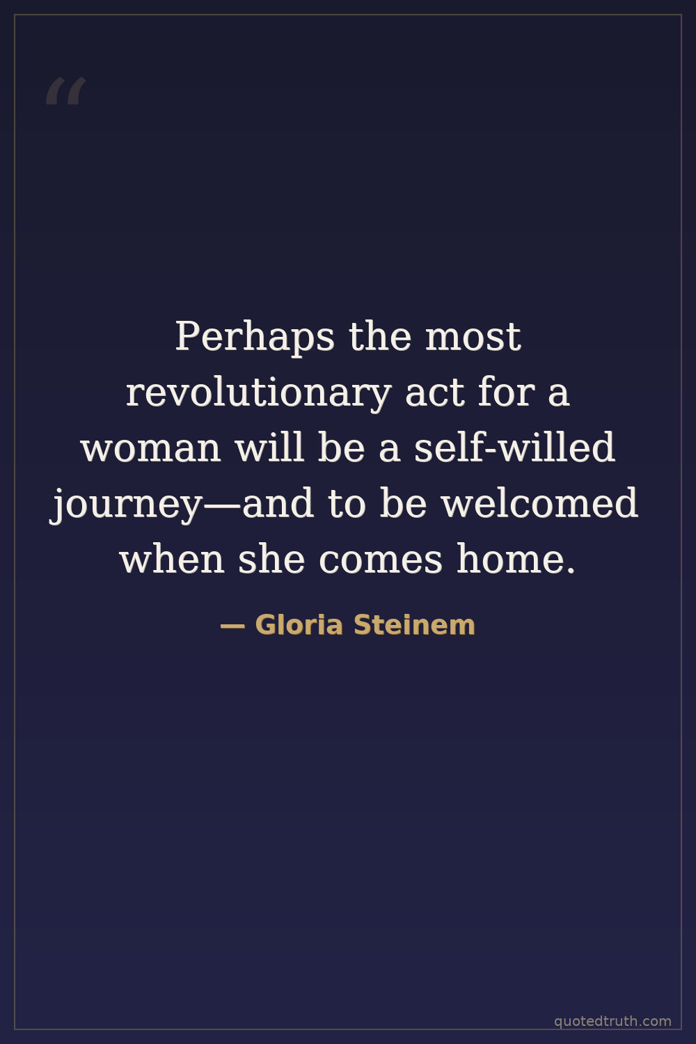 Perhaps the most revolutionary act for a woman will be a self-willed journey—and to be welcomed when she comes home.
