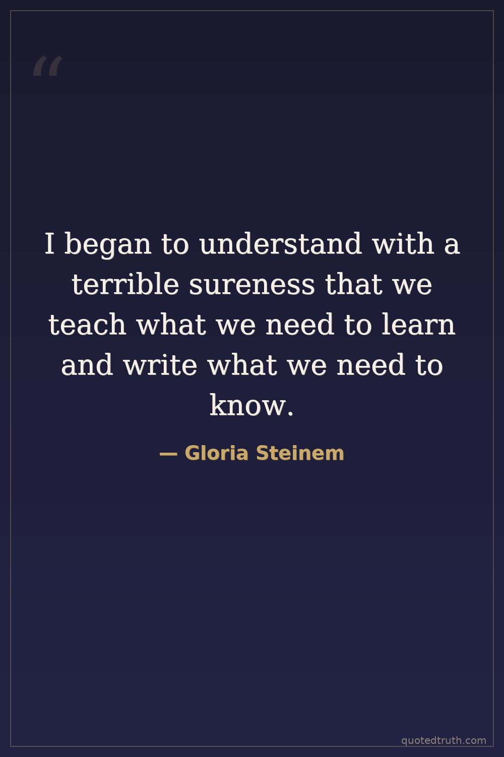 I began to understand with a terrible sureness that we teach what we need to learn and write what we need to know.