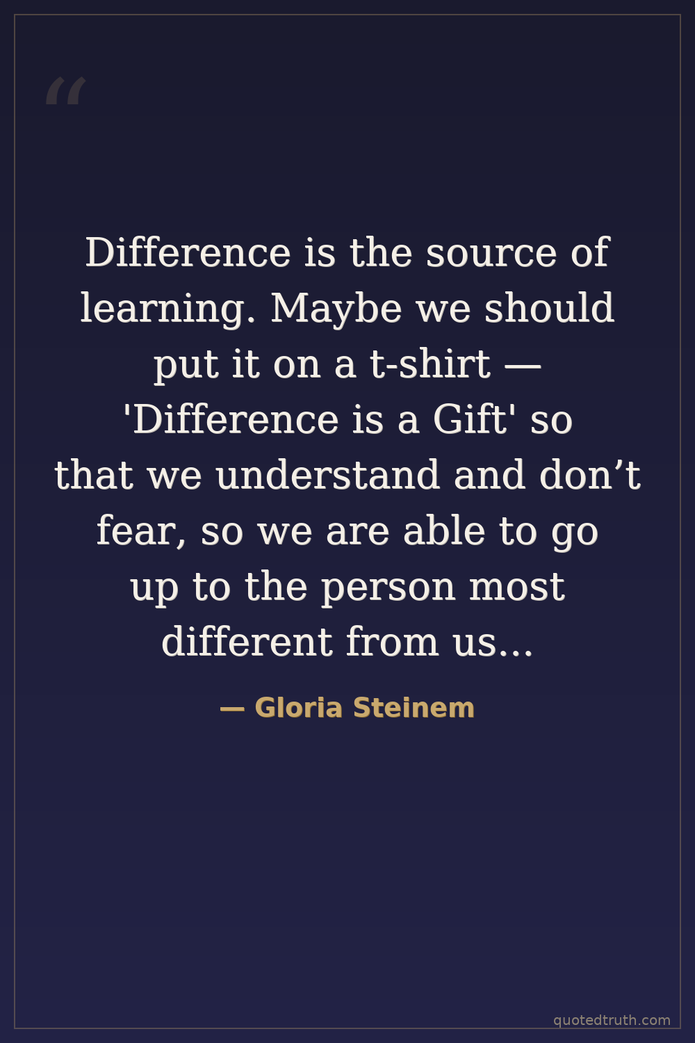 Difference is the source of learning. Maybe we should put it on a t-shirt — 'Difference is a Gift' so that we understand and don’t fear, so we are able to go up to the person most different from us and ask them the question we most fear asking.