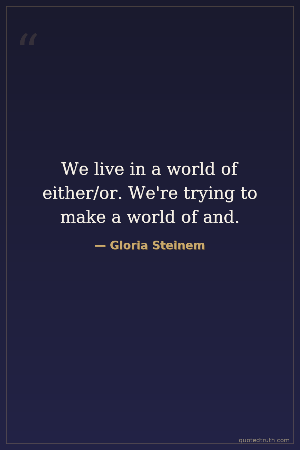 We live in a world of either/or. We're trying to make a world of and.