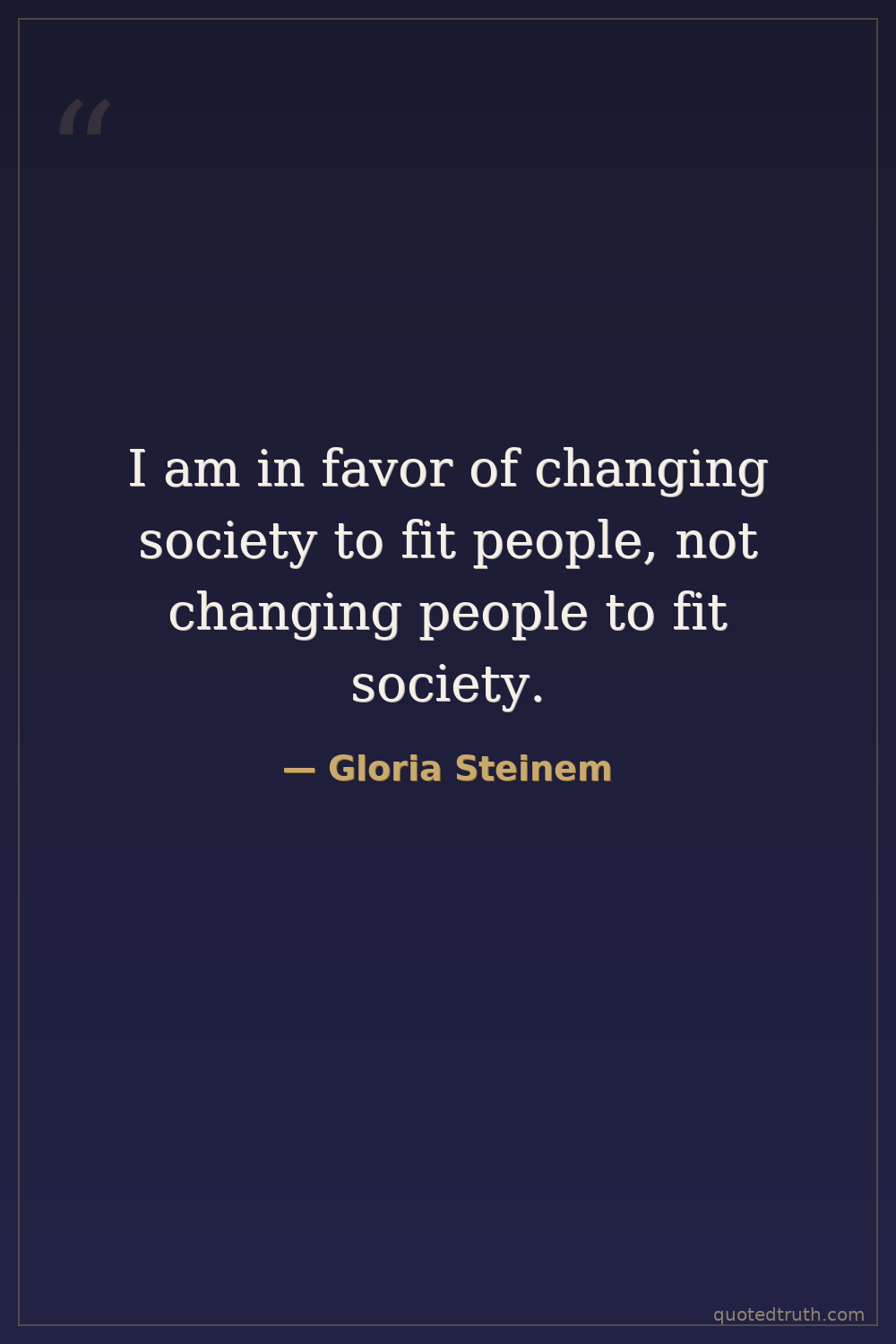 I am in favor of changing society to fit people, not changing people to fit society.