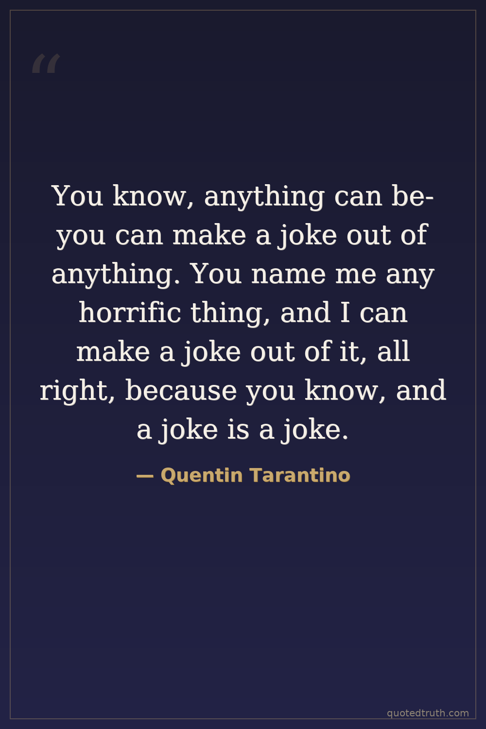 You know, anything can be- you can make a joke out of anything. You name me any horrific thing, and I can make a joke out of it, all right, because you know, and a joke is a joke.