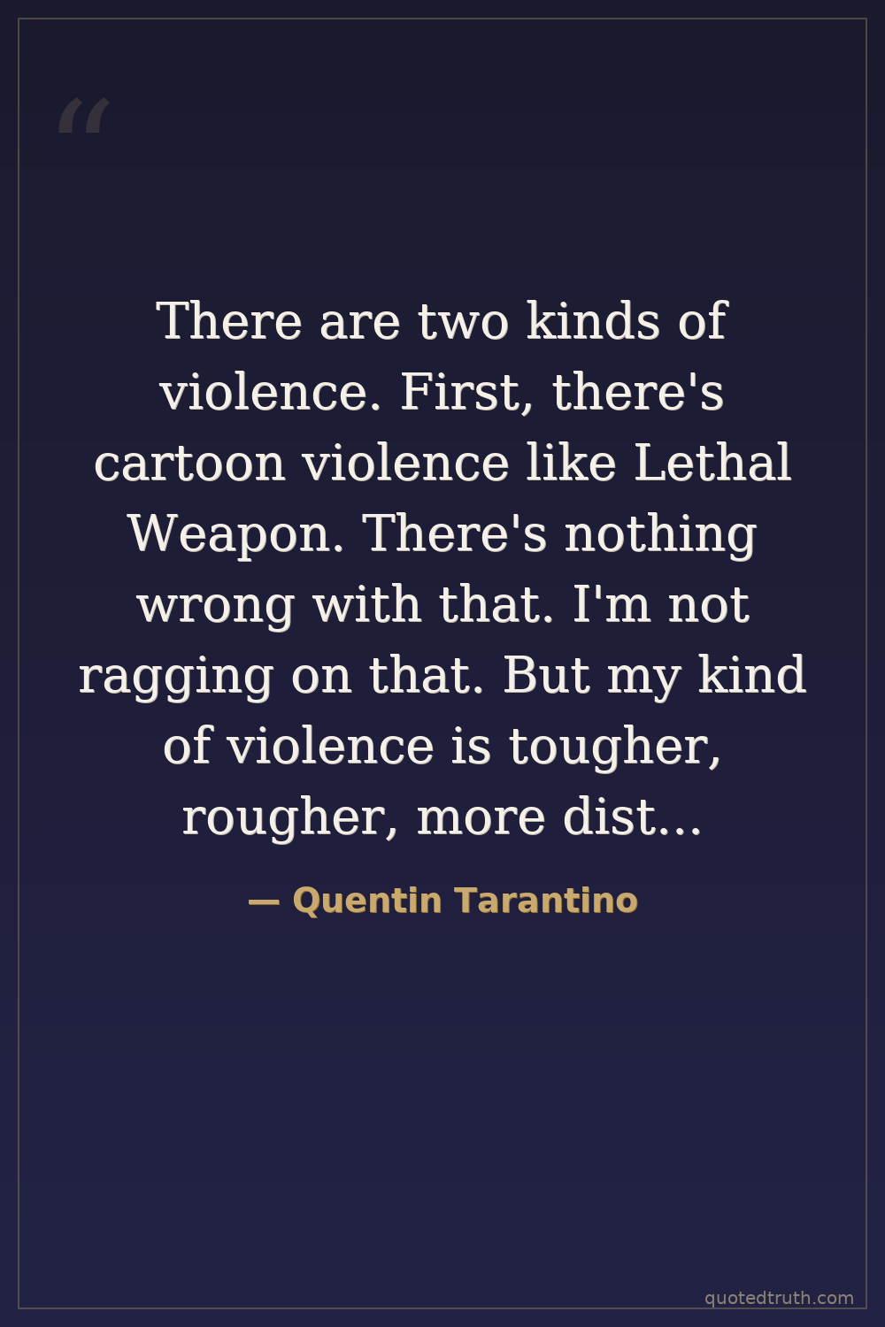 There are two kinds of violence. First, there's cartoon violence like Lethal Weapon. There's nothing wrong with that. I'm not ragging on that. But my kind of violence is tougher, rougher, more disturbing. It gets under your skin.