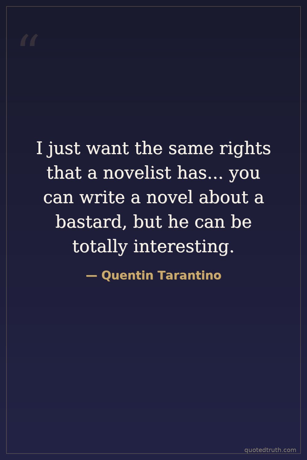 I just want the same rights that a novelist has... you can write a novel about a bastard, but he can be totally interesting.