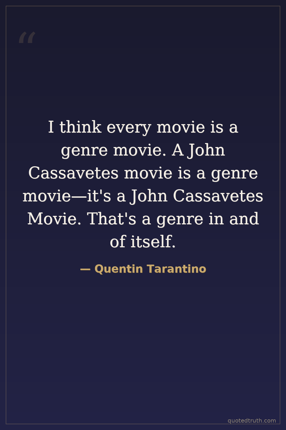 I think every movie is a genre movie. A John Cassavetes movie is a genre movie—it's a John Cassavetes Movie. That's a genre in and of itself.