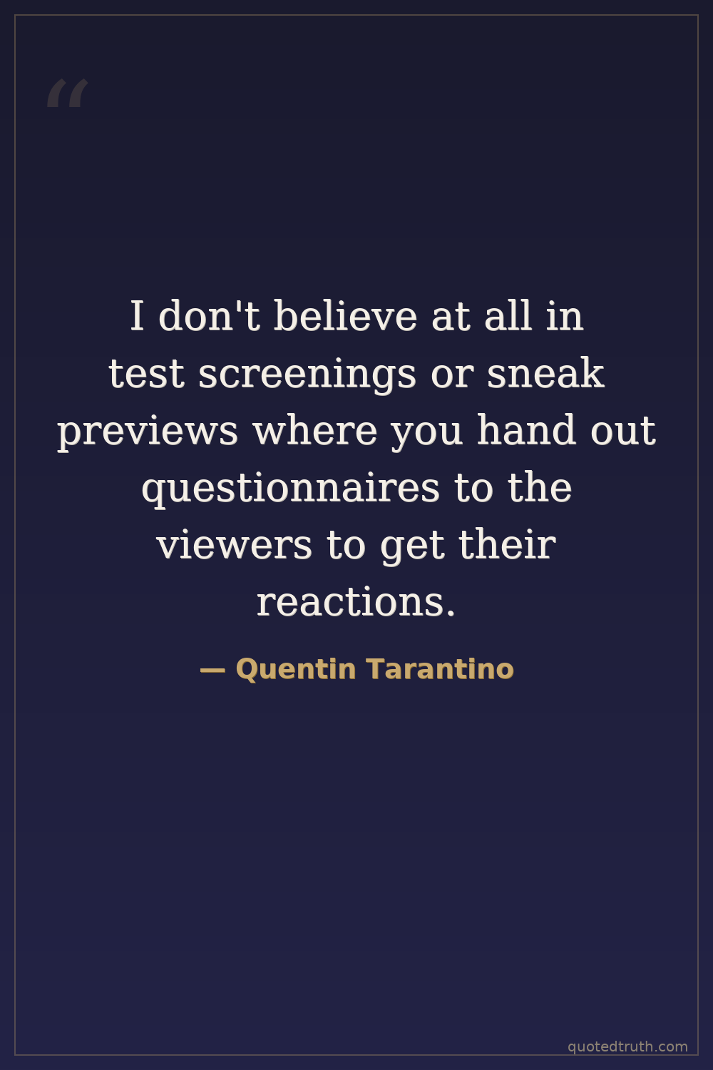 I don't believe at all in test screenings or sneak previews where you hand out questionnaires to the viewers to get their reactions.