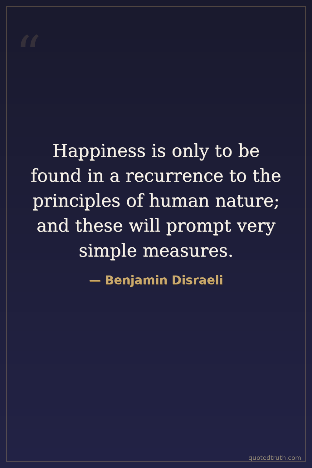 Happiness is only to be found in a recurrence to the principles of human nature; and these will prompt very simple measures.