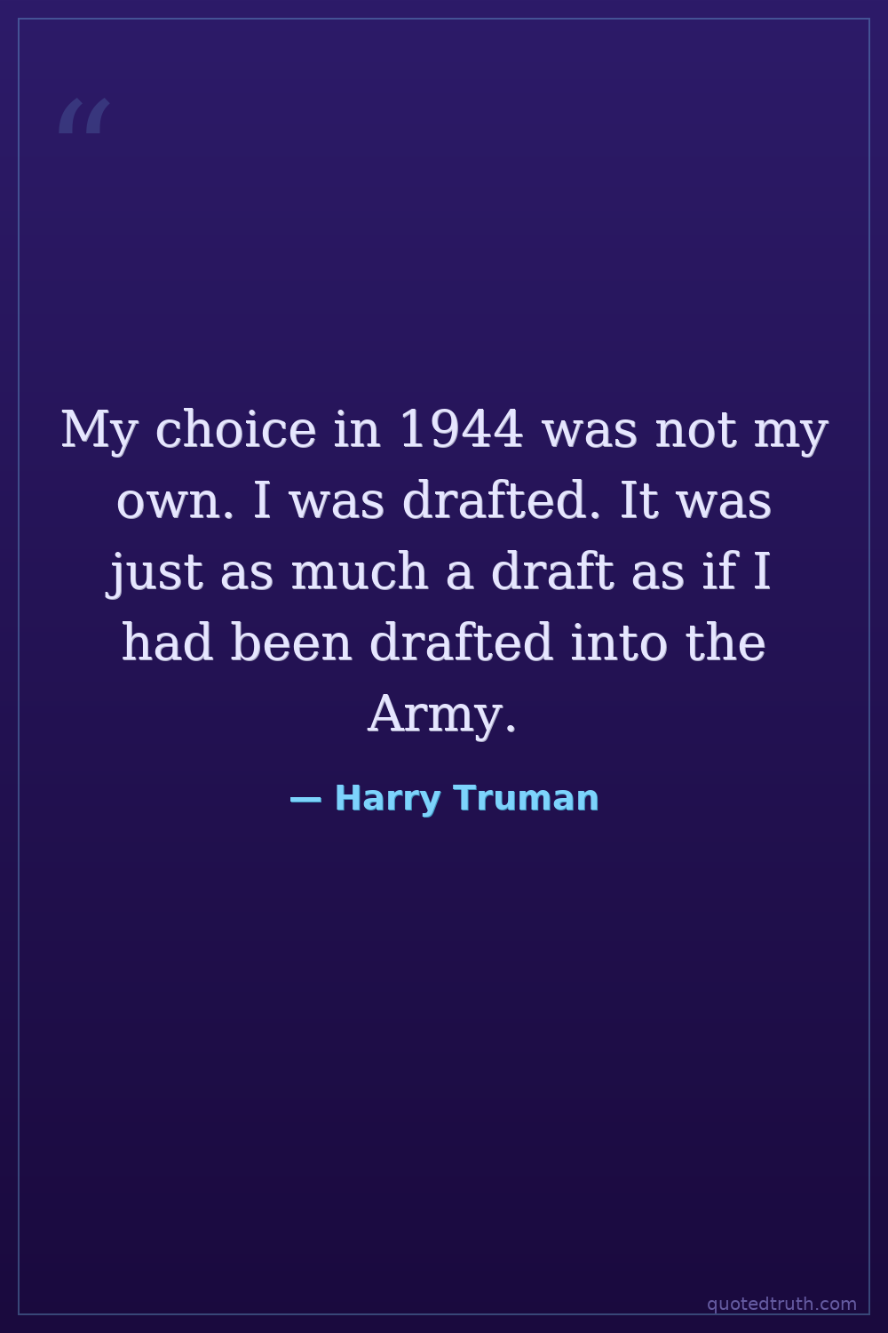 My choice in 1944 was not my own. I was drafted. It was just as much a draft as if I had been drafted into the Army.