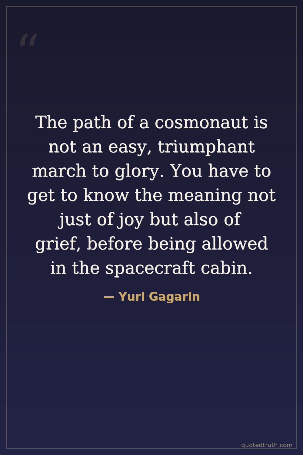 Yuri Gagarin — "The path of a cosmonaut is not an easy, triumphant march to glory. You have to g…"
