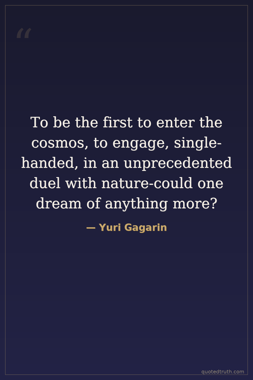 To be the first to enter the cosmos, to engage, single-handed, in an unprecedented duel with nature-could one dream of anything more?