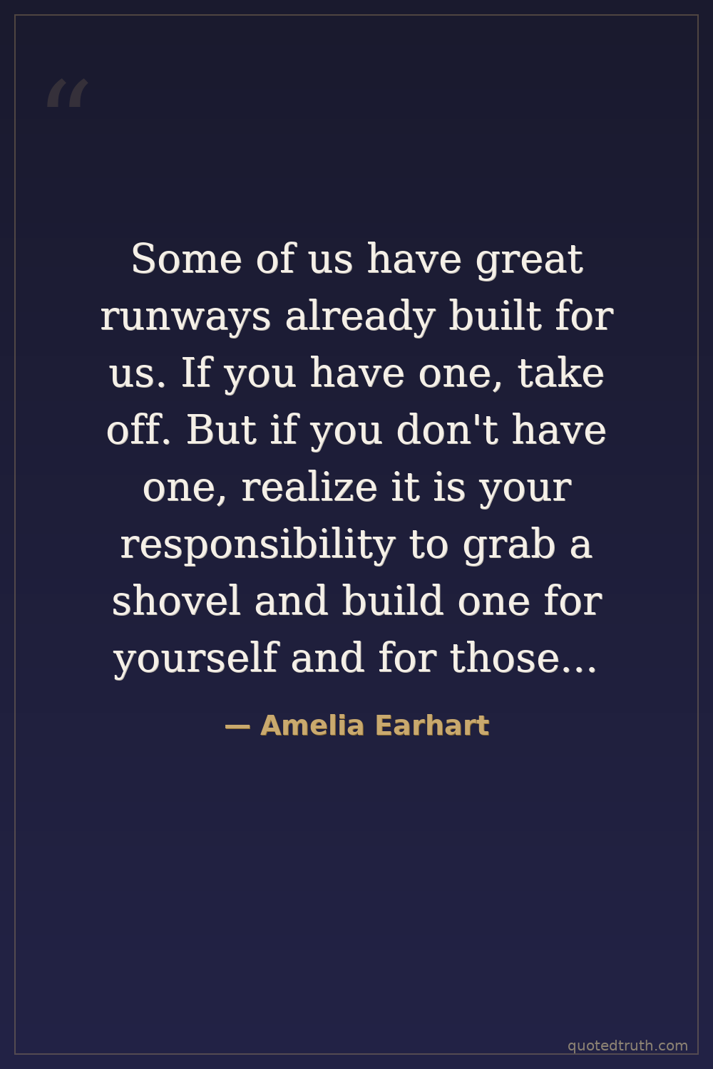 Some of us have great runways already built for us. If you have one, take off. But if you don't have one, realize it is your responsibility to grab a shovel and build one for yourself and for those who will follow after you.