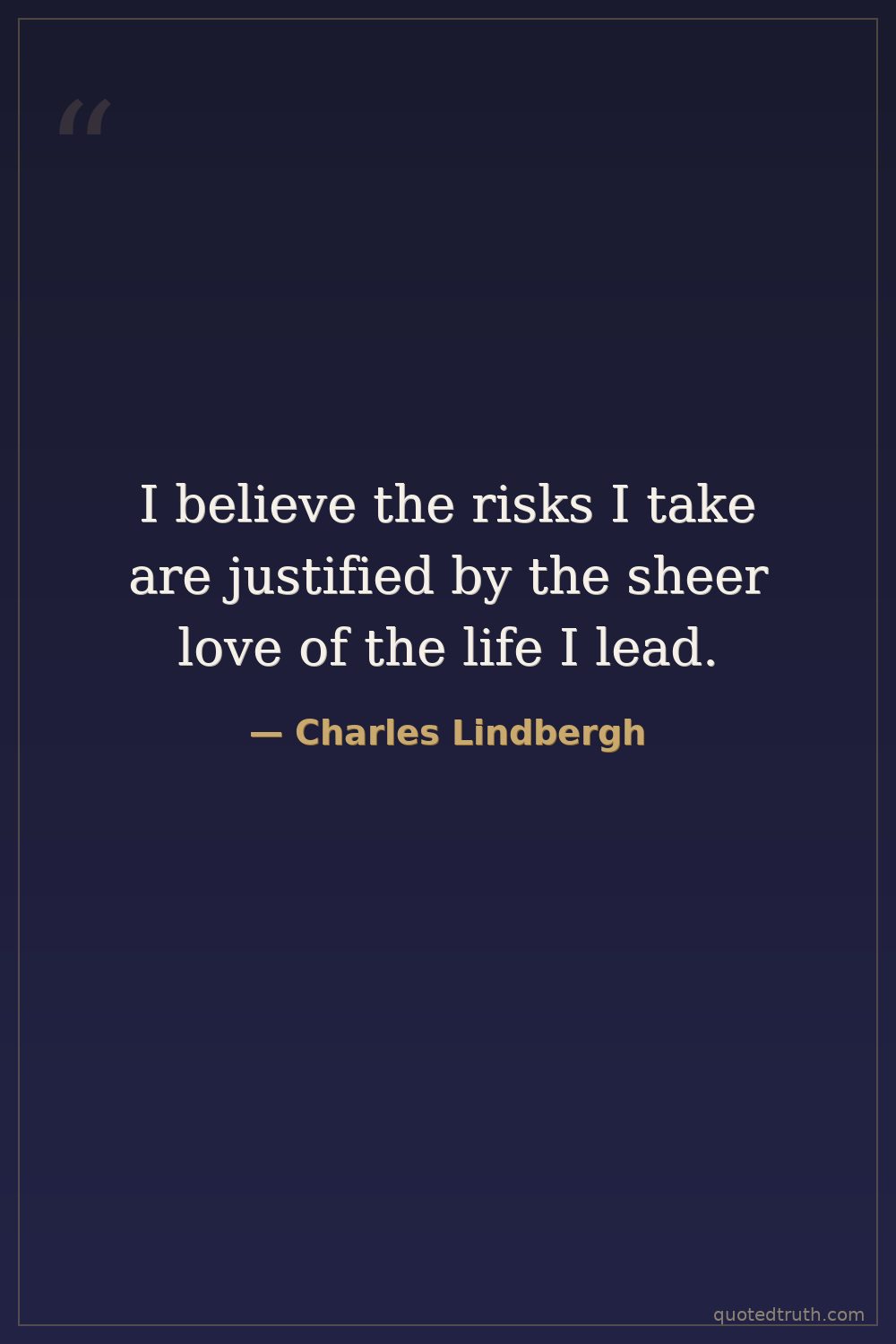 Controversial"What kind of man would live where there is no danger? I don't believe in taking foolish chances. But nothing can be accomplished by not taking a chance at all."