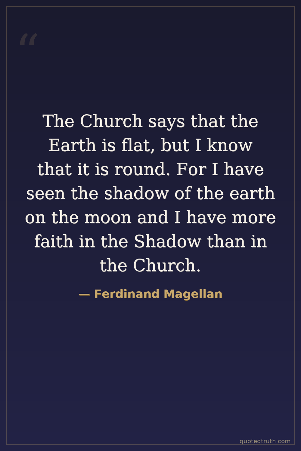 The Church says that the Earth is flat, but I know that it is round. For I have seen the shadow of the earth on the moon and I have more faith in the Shadow than in the Church.