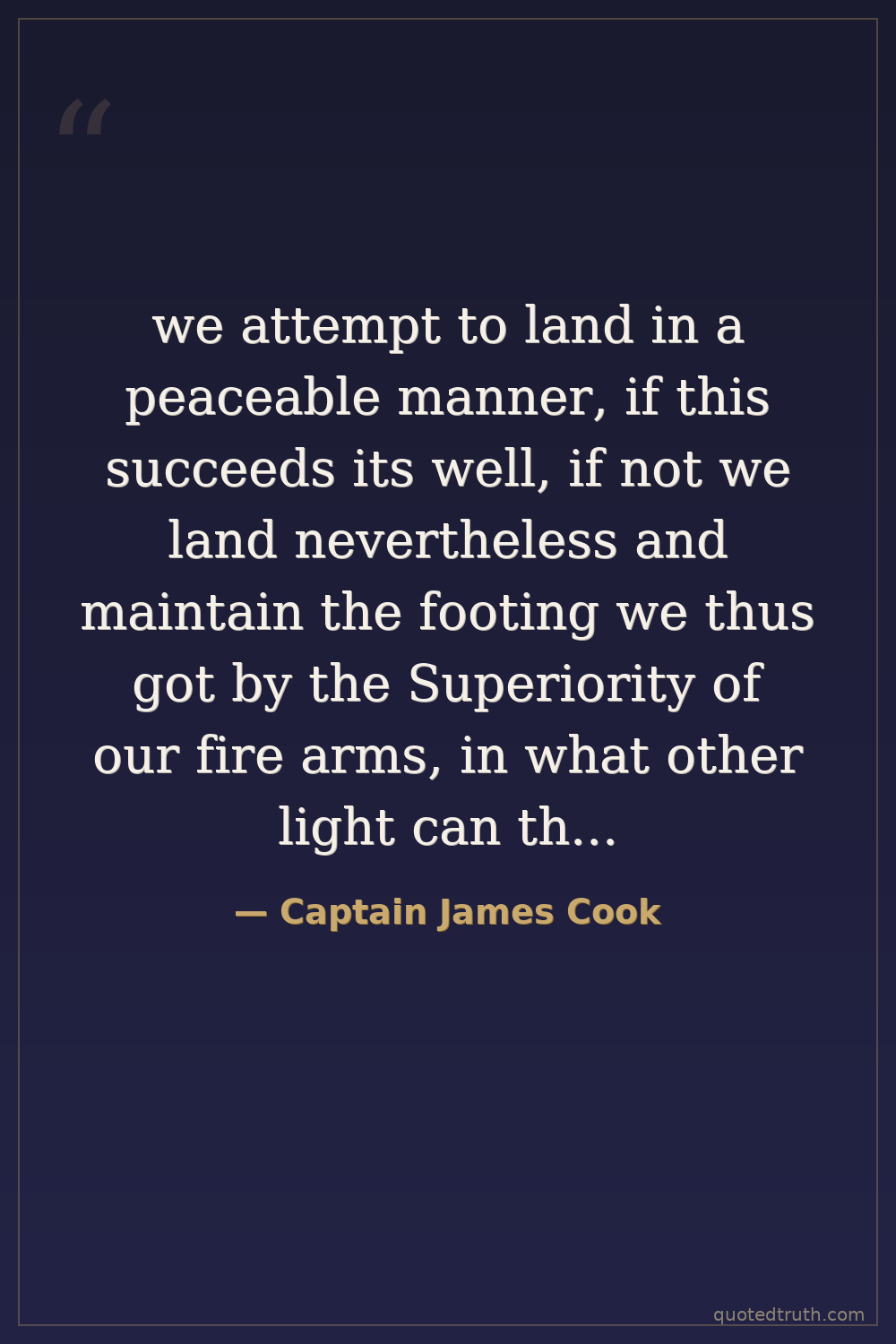 we attempt to land in a peaceable manner, if this succeeds its well, if not we land nevertheless and maintain the footing we thus got by the Superiority of our fire arms, in what other light can they than at first look upon us but as invaders of their Country.