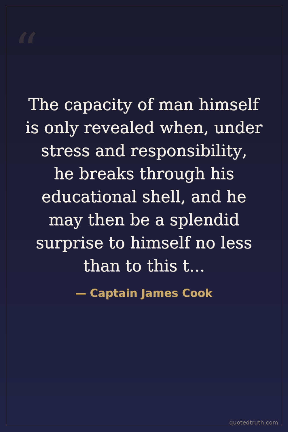 The capacity of man himself is only revealed when, under stress and responsibility, he breaks through his educational shell, and he may then be a splendid surprise to himself no less than to this teachers.