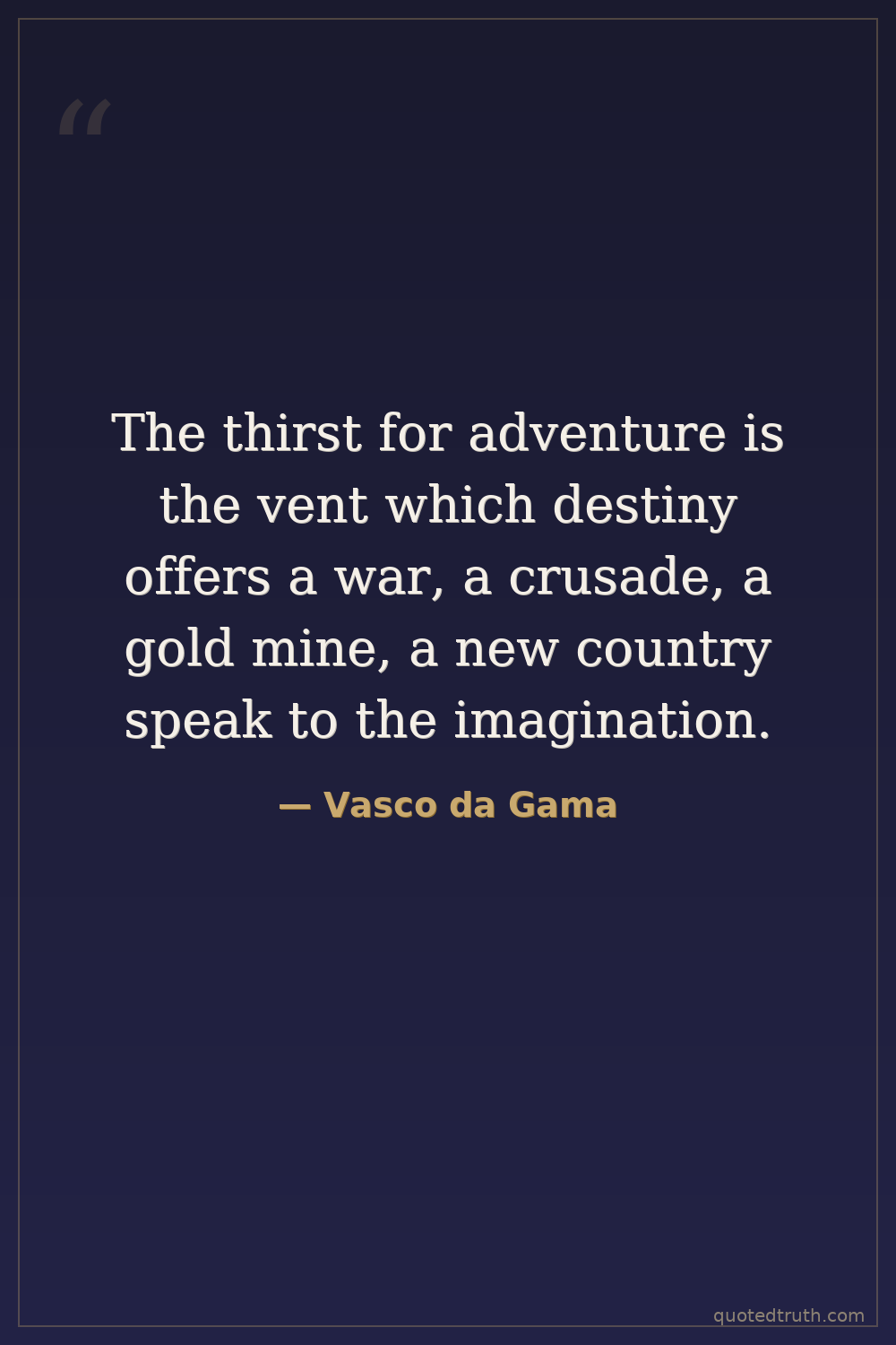 The thirst for adventure is the vent which destiny offers a war, a crusade, a gold mine, a new country speak to the imagination.