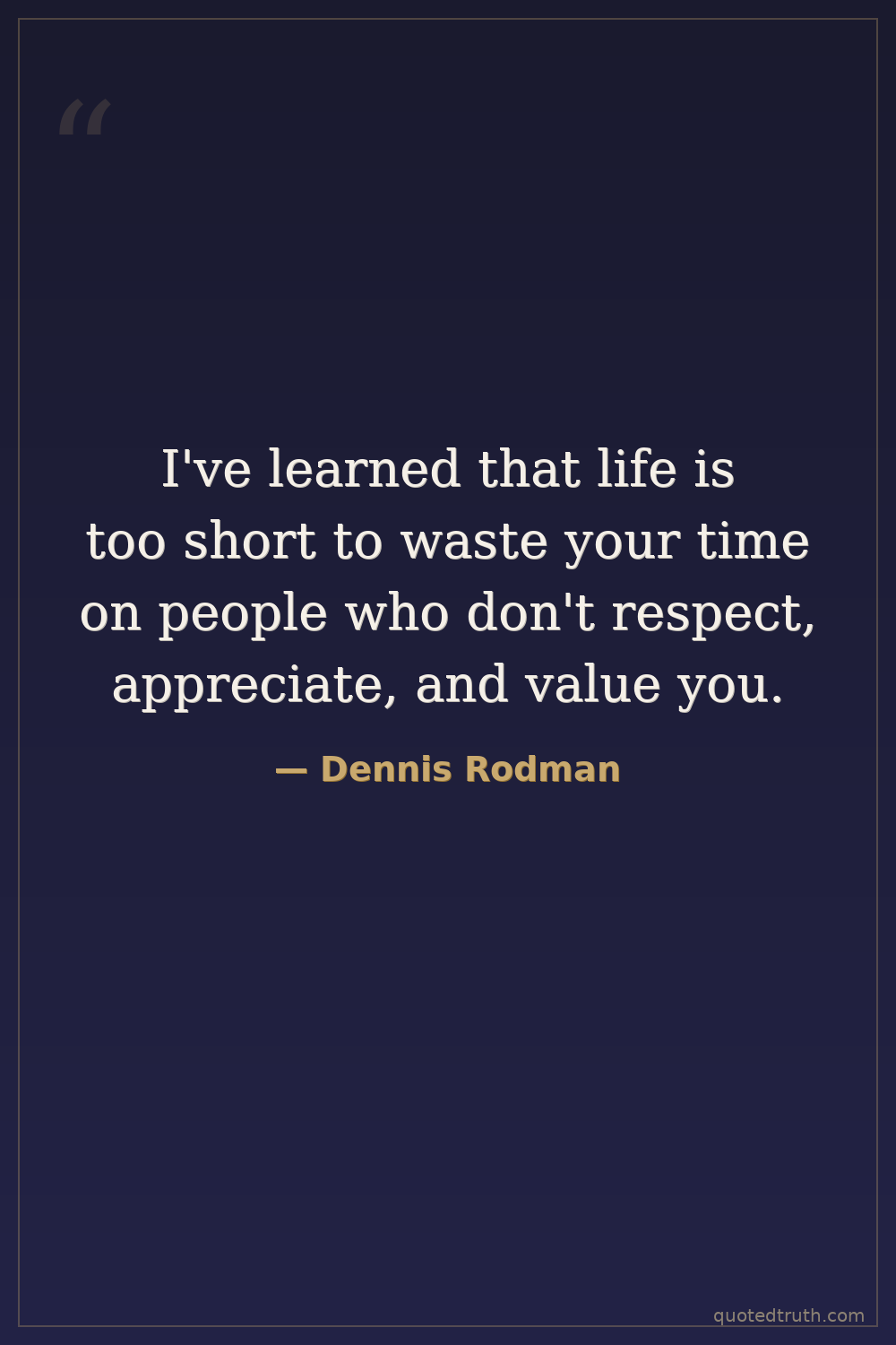 I've learned that life is too short to waste your time on people who don't respect, appreciate, and value you.