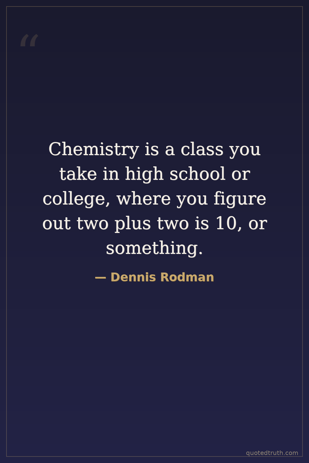 Chemistry is a class you take in high school or college, where you figure out two plus two is 10, or something.