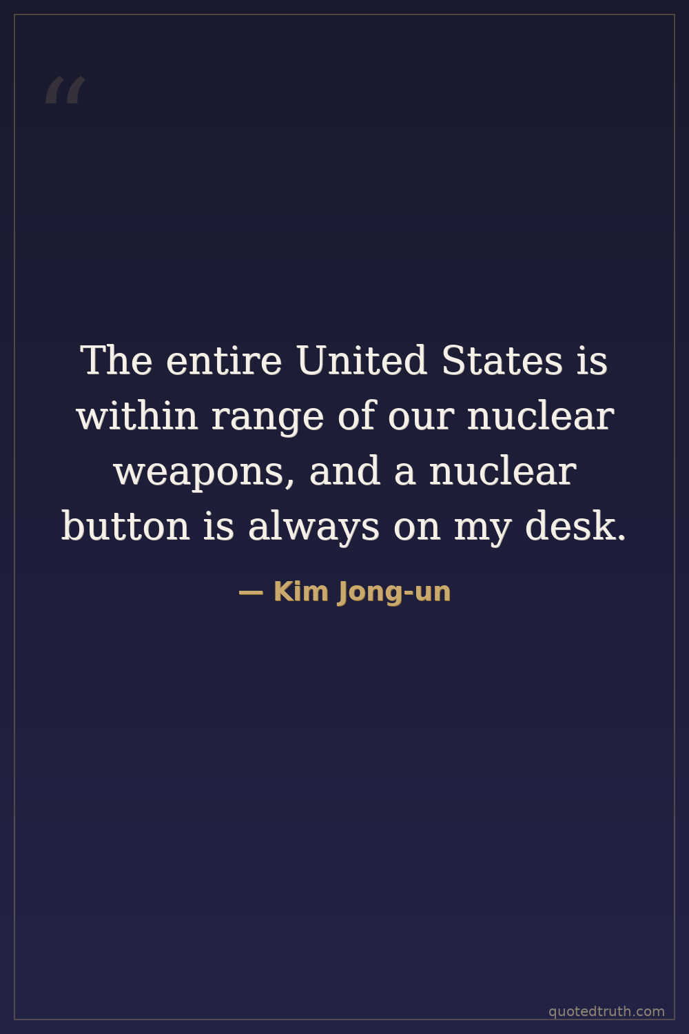 The entire United States is within range of our nuclear weapons, and a nuclear button is always on my desk.