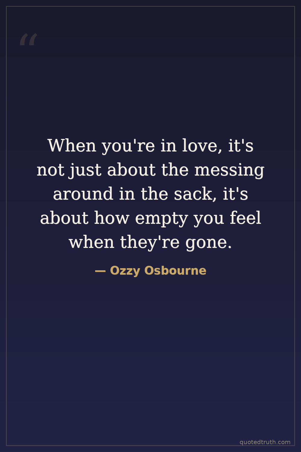 When you're in love, it's not just about the messing around in the sack, it's about how empty you feel when they're gone.