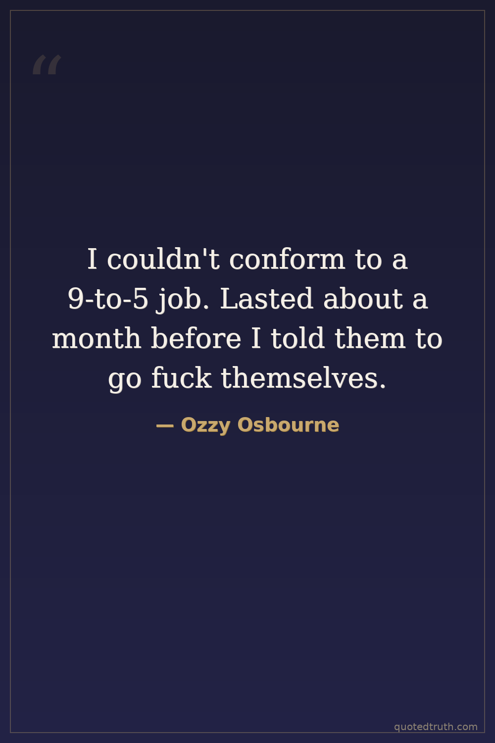 I couldn't conform to a 9-to-5 job. Lasted about a month before I told them to go fuck themselves.