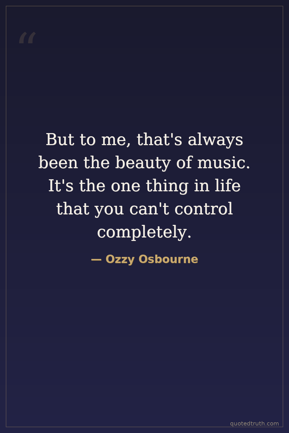 But to me, that's always been the beauty of music. It's the one thing in life that you can't control completely.