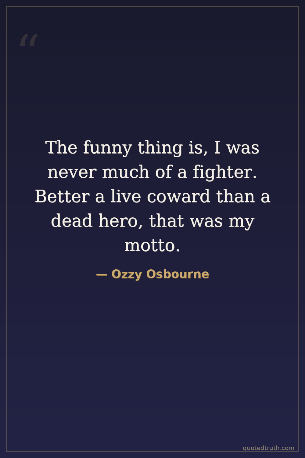 The funny thing is, I was never much of a fighter. Better a live coward than a dead hero, that was my motto.