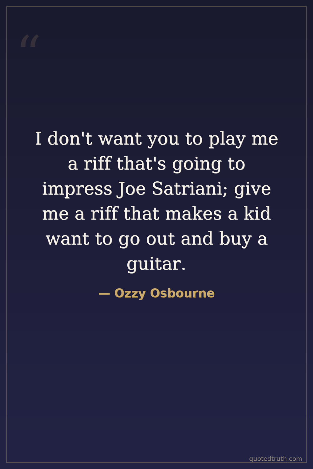 I don't want you to play me a riff that's going to impress Joe Satriani; give me a riff that makes a kid want to go out and buy a guitar.
