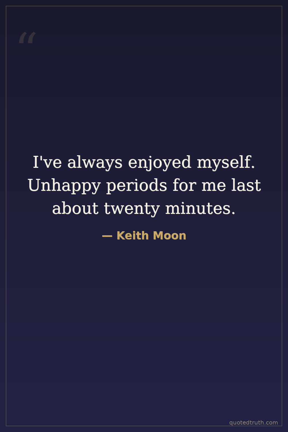 I've always enjoyed myself. Unhappy periods for me last about twenty minutes.