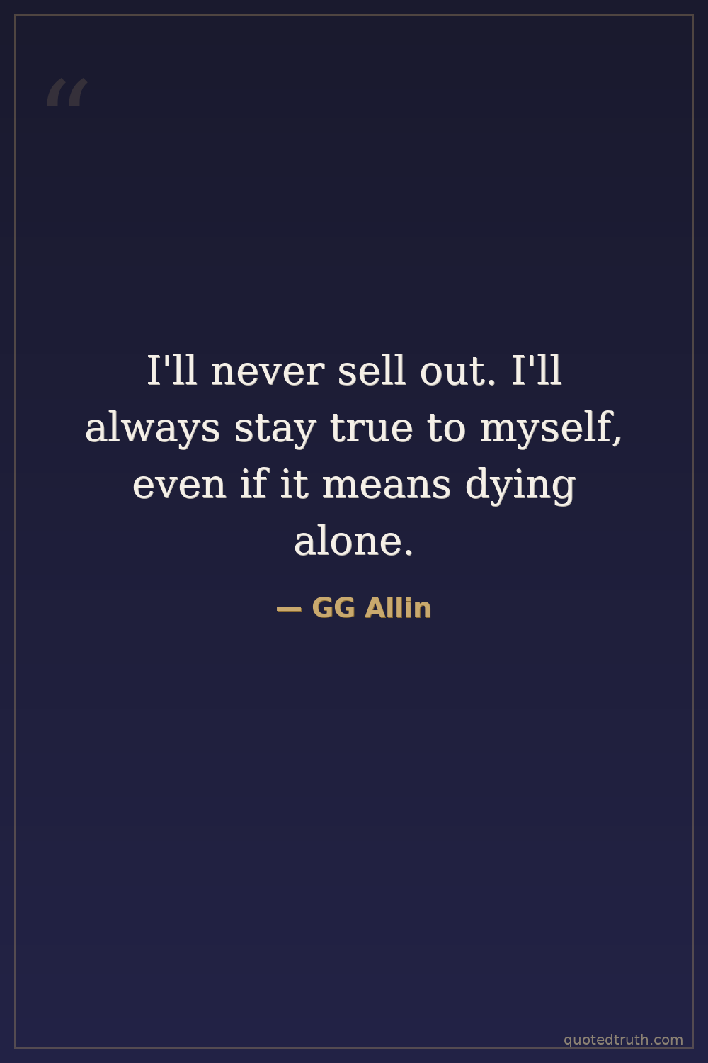 I'll never sell out. I'll always stay true to myself, even if it means dying alone.