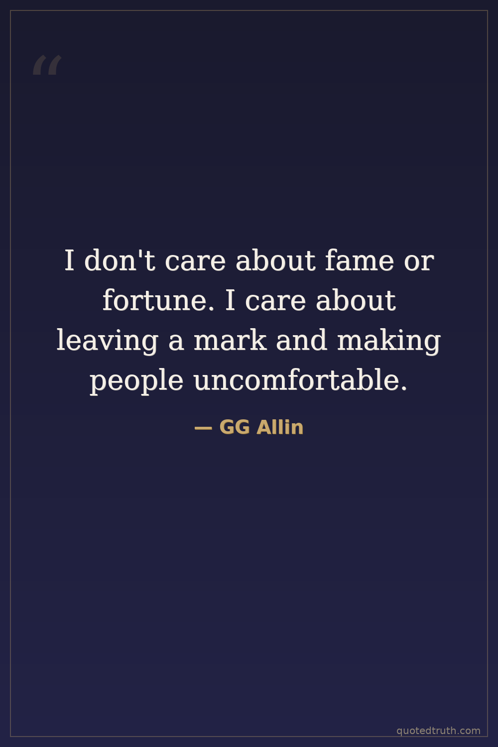 I don't care about fame or fortune. I care about leaving a mark and making people uncomfortable.
