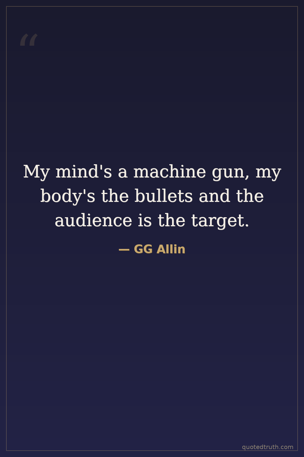 My mind's a machine gun, my body's the bullets and the audience is the target.