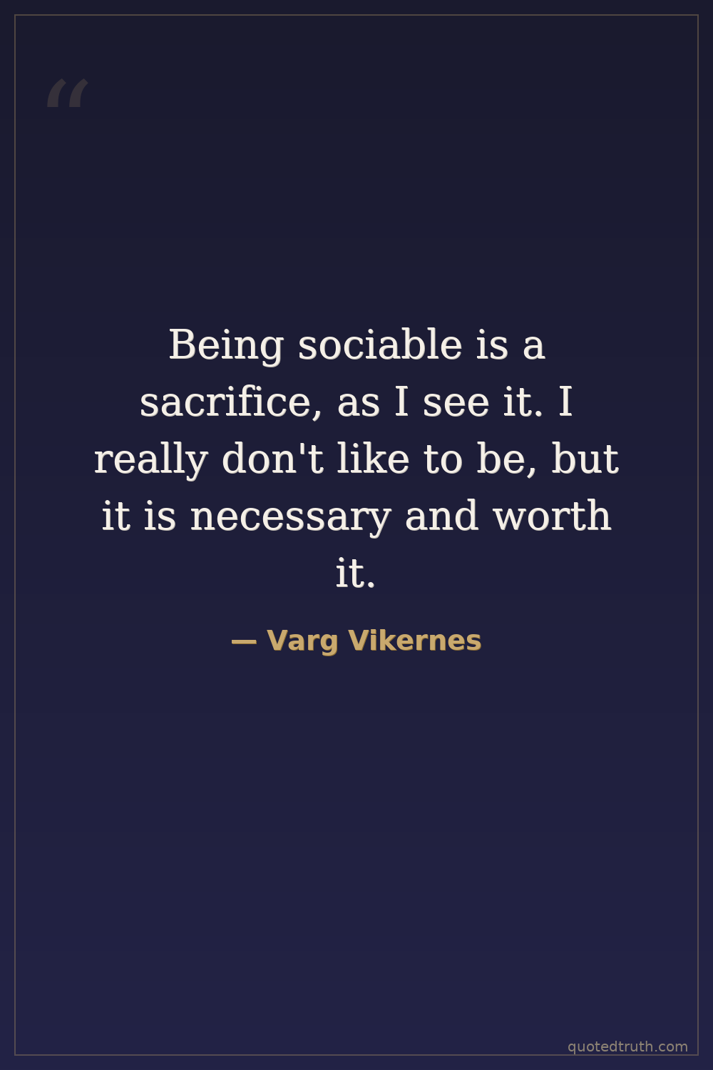 Being sociable is a sacrifice, as I see it. I really don't like to be, but it is necessary and worth it.