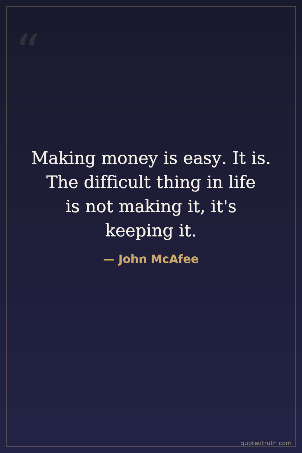 Making money is easy. It is. The difficult thing in life is not making it, it's keeping it.