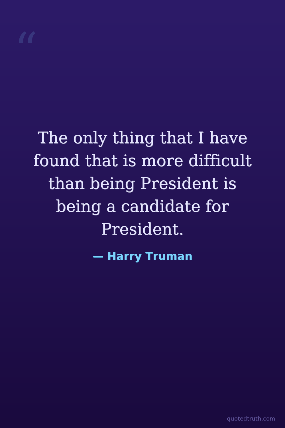 The only thing that I have found that is more difficult than being President is being a candidate for President.