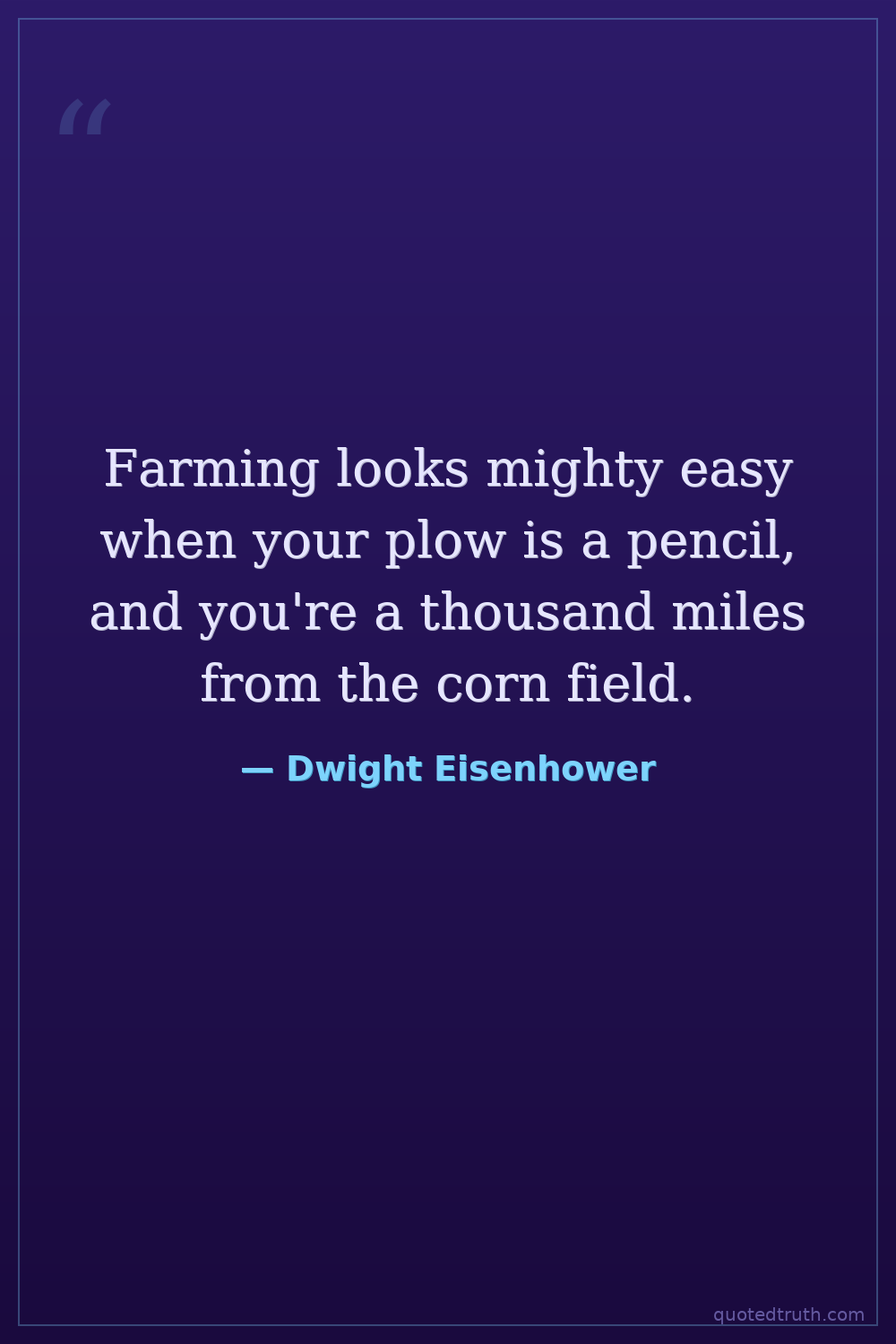 Farming looks mighty easy when your plow is a pencil, and you're a thousand miles from the corn field.