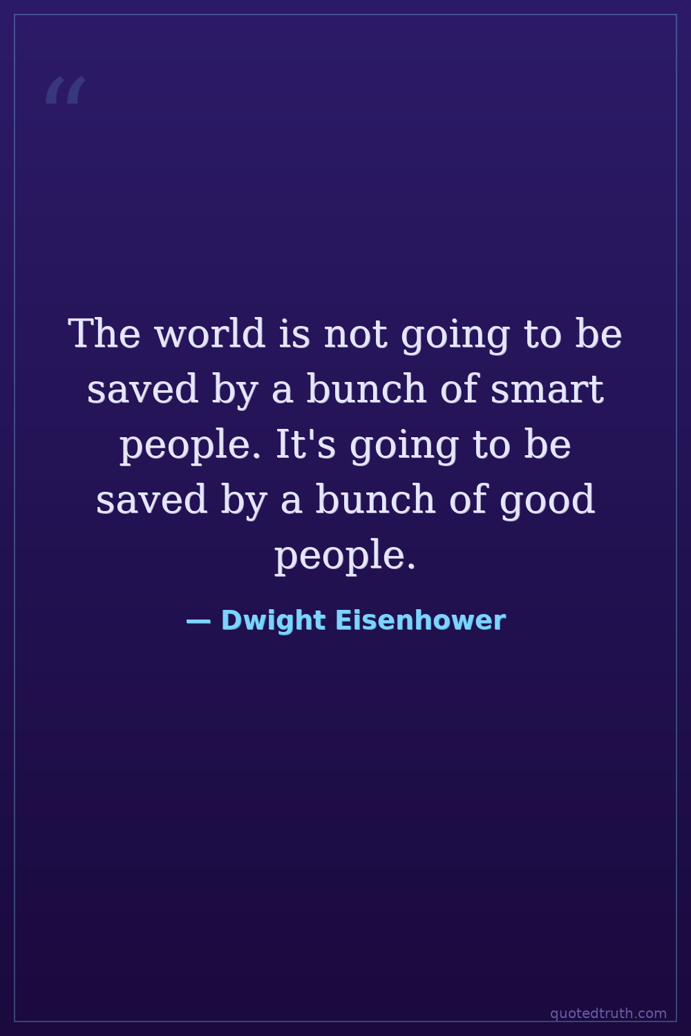 The world is not going to be saved by a bunch of smart people. It's going to be saved by a bunch of good people.