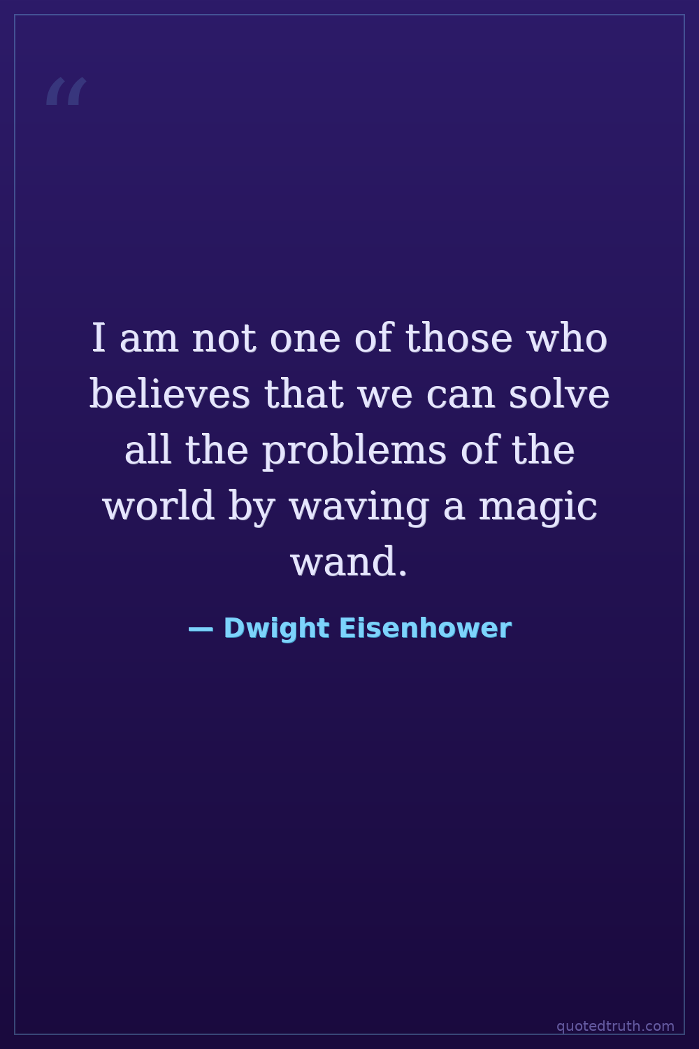 I am not one of those who believes that we can solve all the problems of the world by waving a magic wand.
