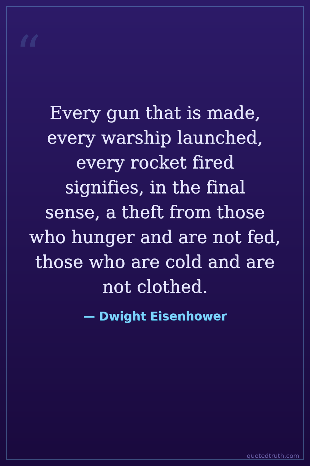 Every gun that is made, every warship launched, every rocket fired signifies, in the final sense, a theft from those who hunger and are not fed, those who are cold and are not clothed.