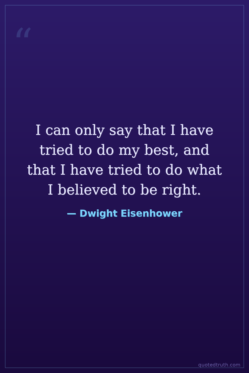 I can only say that I have tried to do my best, and that I have tried to do what I believed to be right.