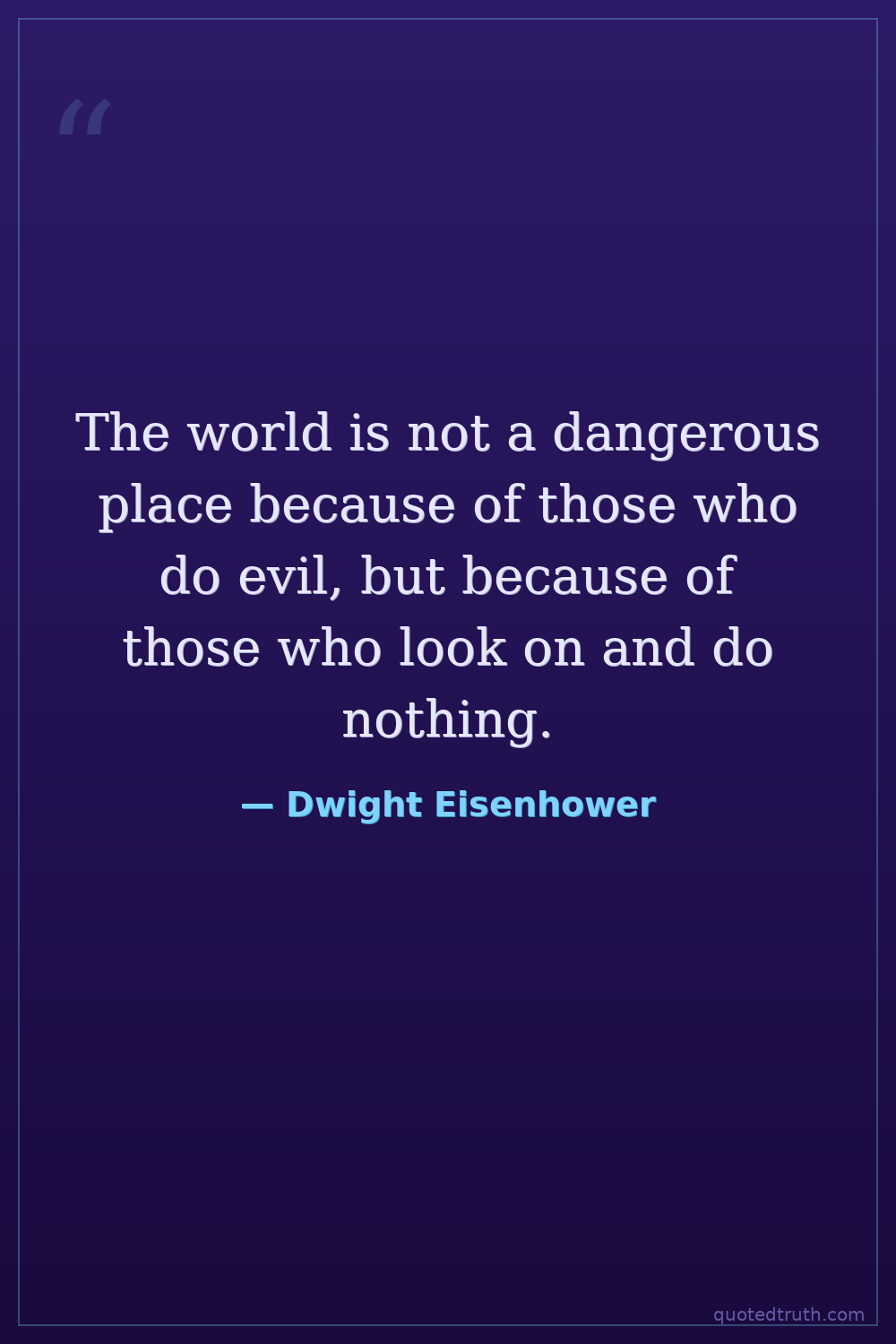 The world is not a dangerous place because of those who do evil, but because of those who look on and do nothing.