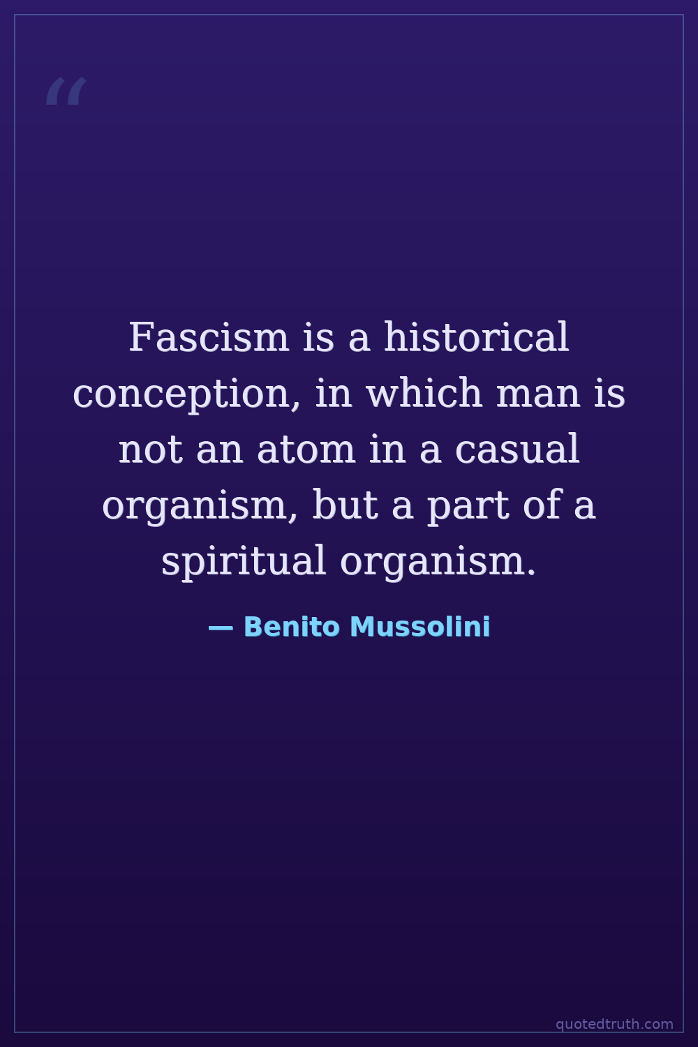 Fascism is a historical conception, in which man is not an atom in a casual organism, but a part of a spiritual organism.