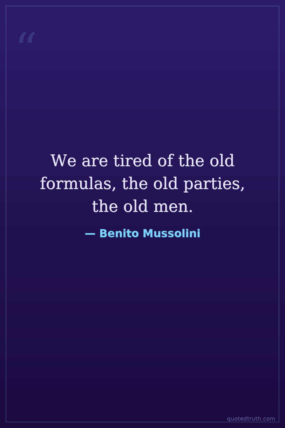 We are tired of the old formulas, the old parties, the old men.