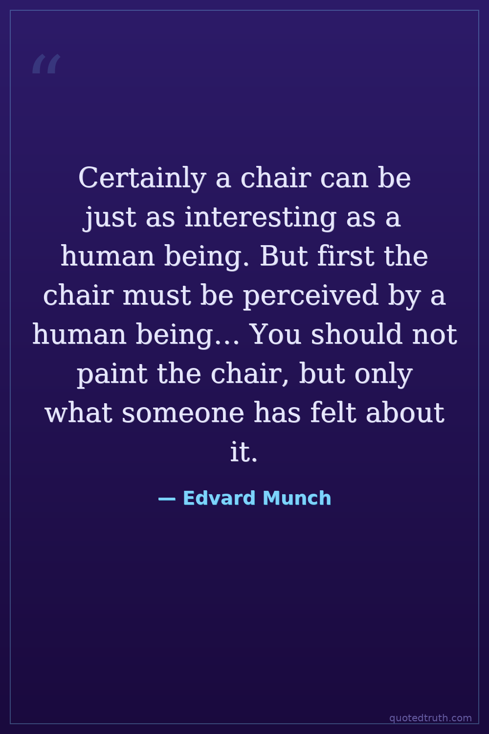 Certainly a chair can be just as interesting as a human being. But first the chair must be perceived by a human being… You should not paint the chair, but only what someone has felt about it.