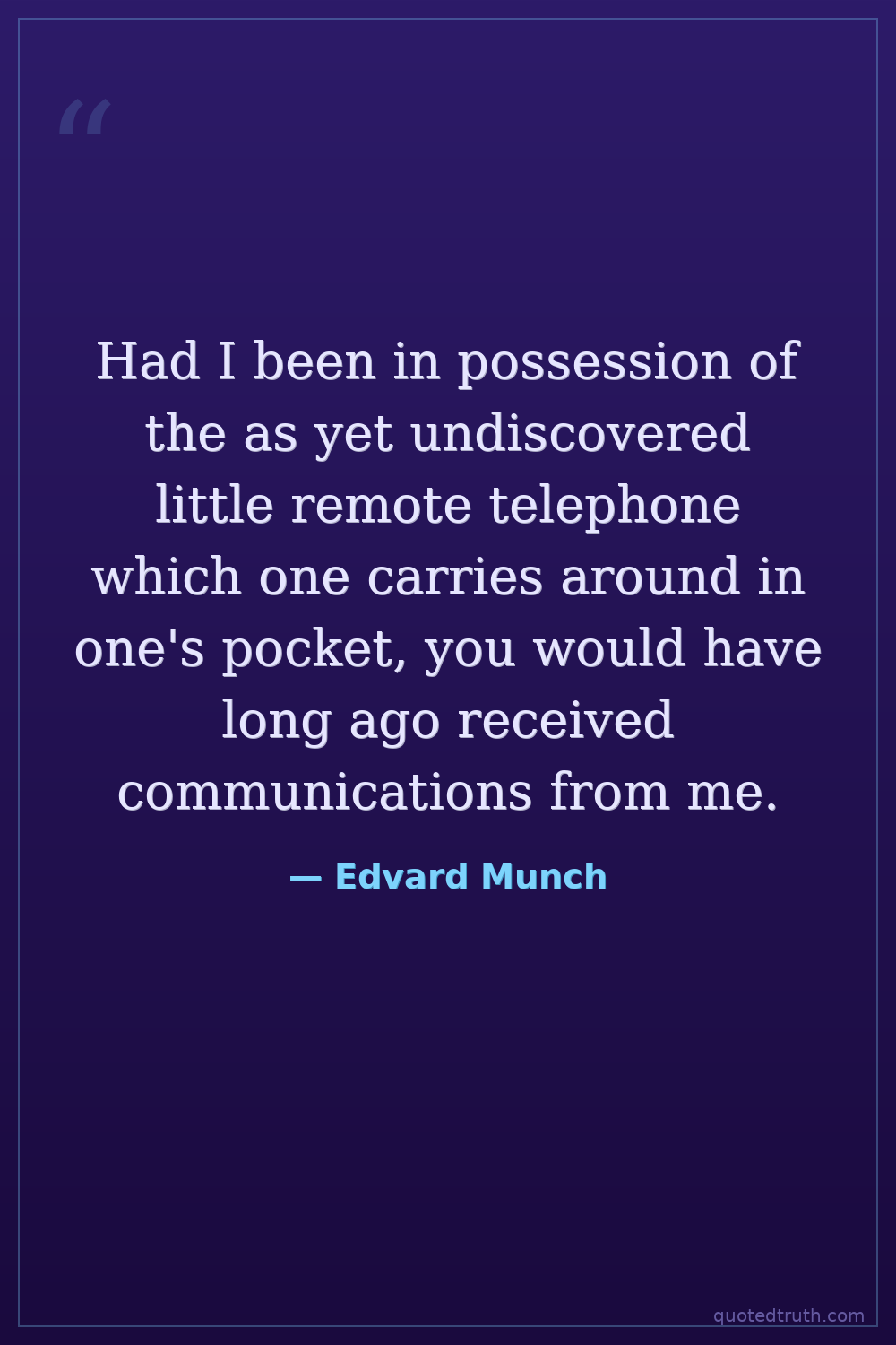 Had I been in possession of the as yet undiscovered little remote telephone which one carries around in one's pocket, you would have long ago received communications from me.
