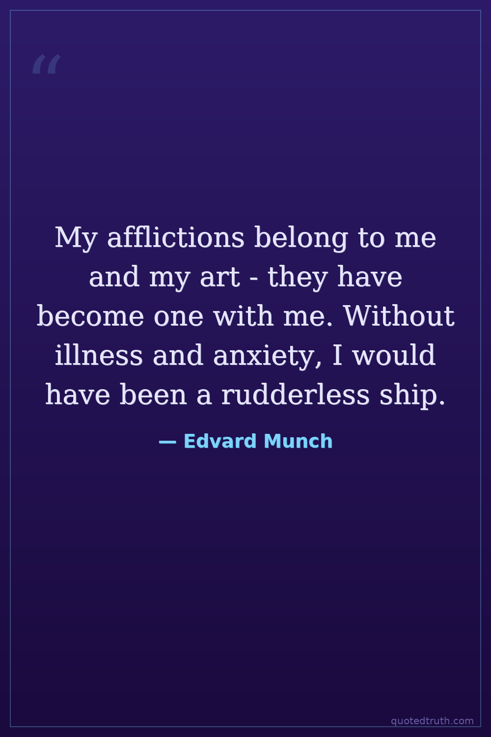 My afflictions belong to me and my art - they have become one with me. Without illness and anxiety, I would have been a rudderless ship.