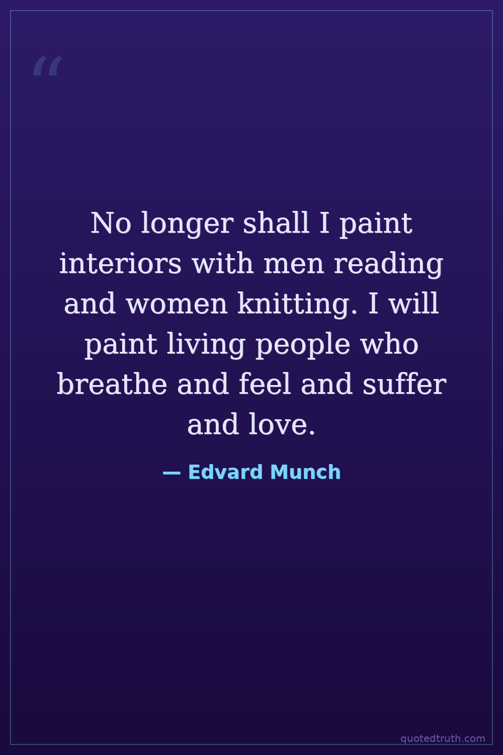 No longer shall I paint interiors with men reading and women knitting. I will paint living people who breathe and feel and suffer and love.