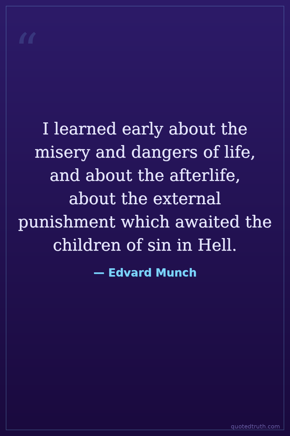 I learned early about the misery and dangers of life, and about the afterlife, about the external punishment which awaited the children of sin in Hell.