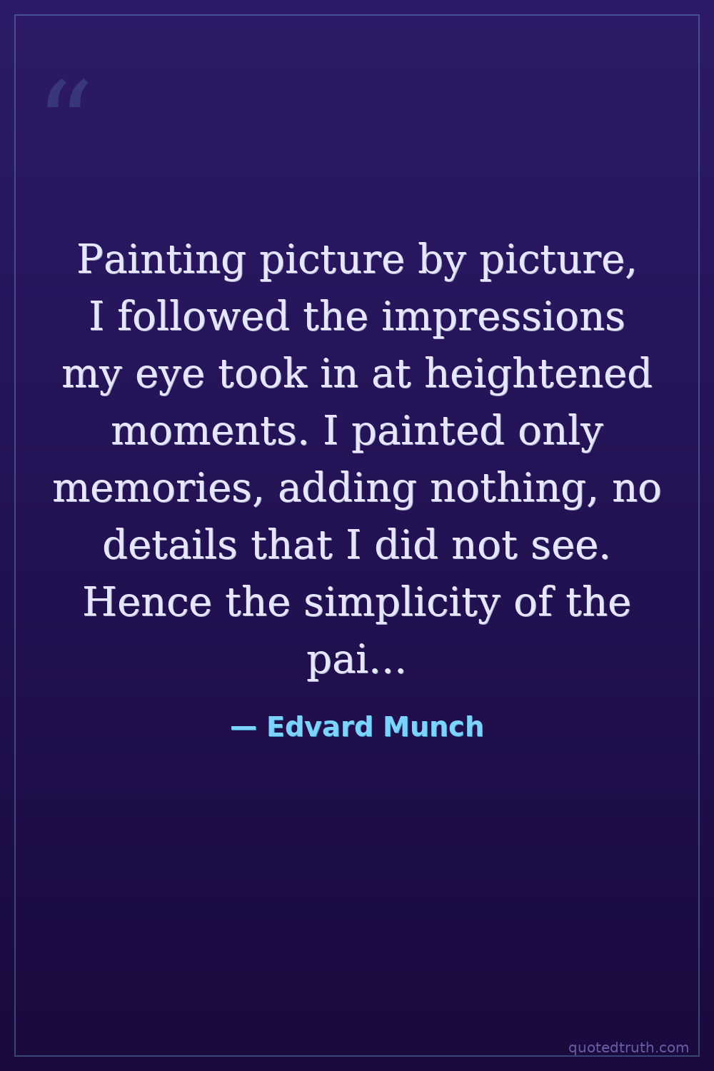 "I do not believe in the art which is not the compulsive result of man's urge to open his heart."